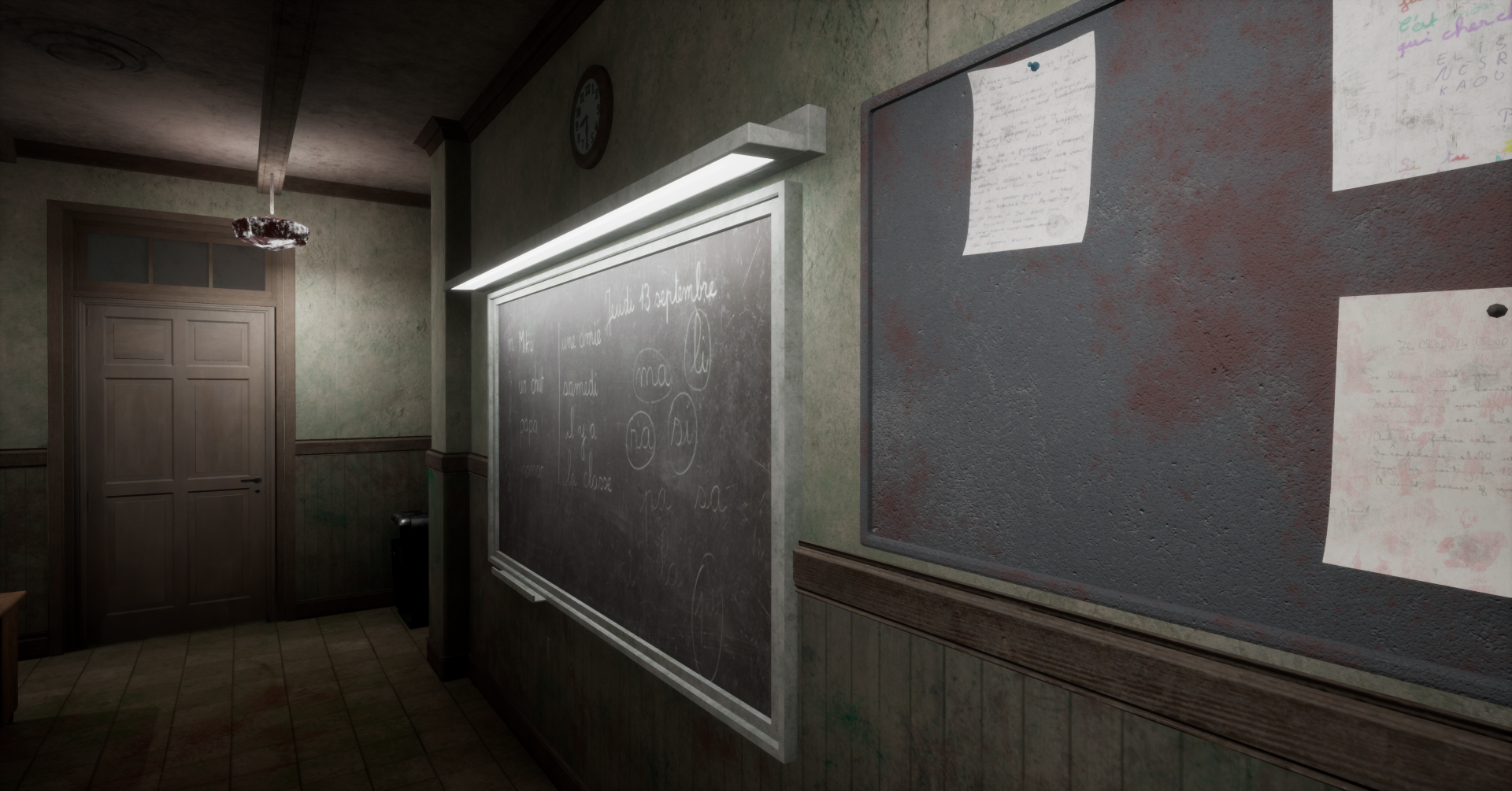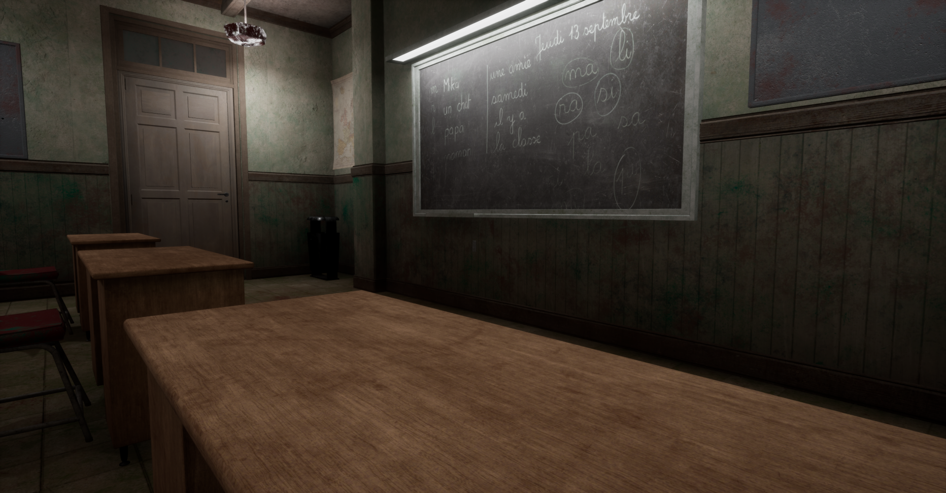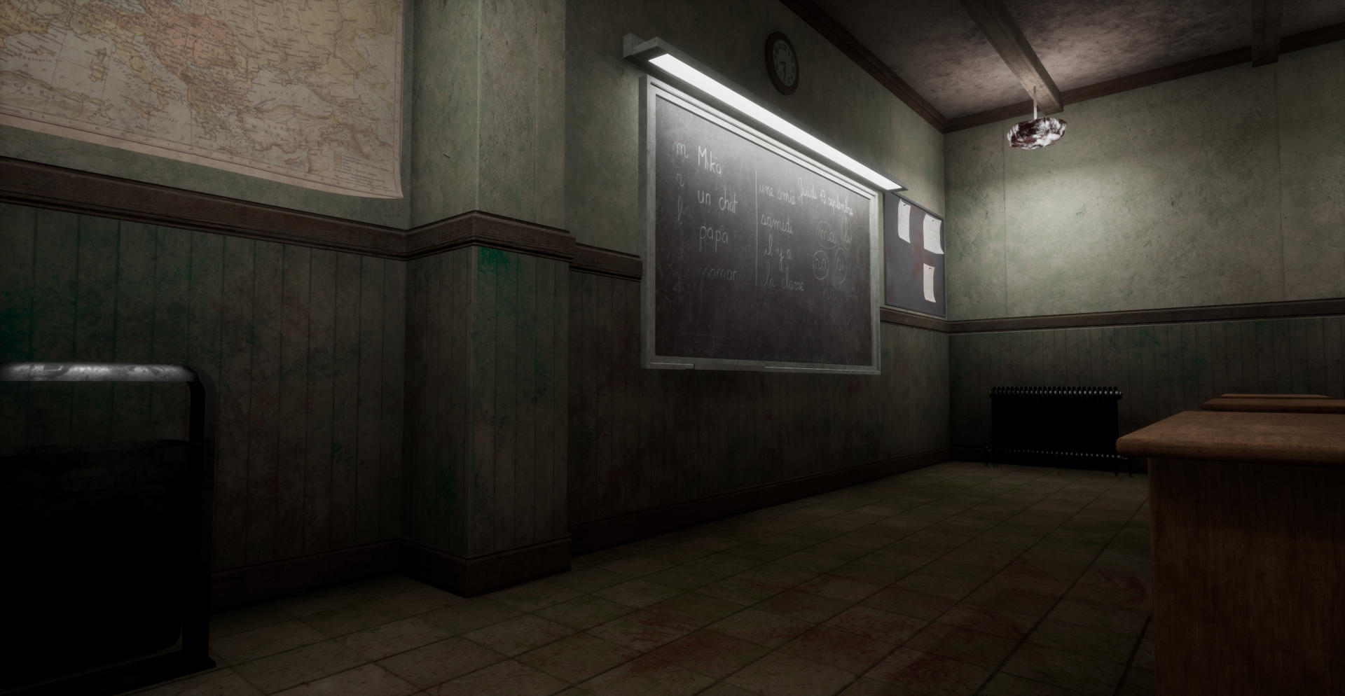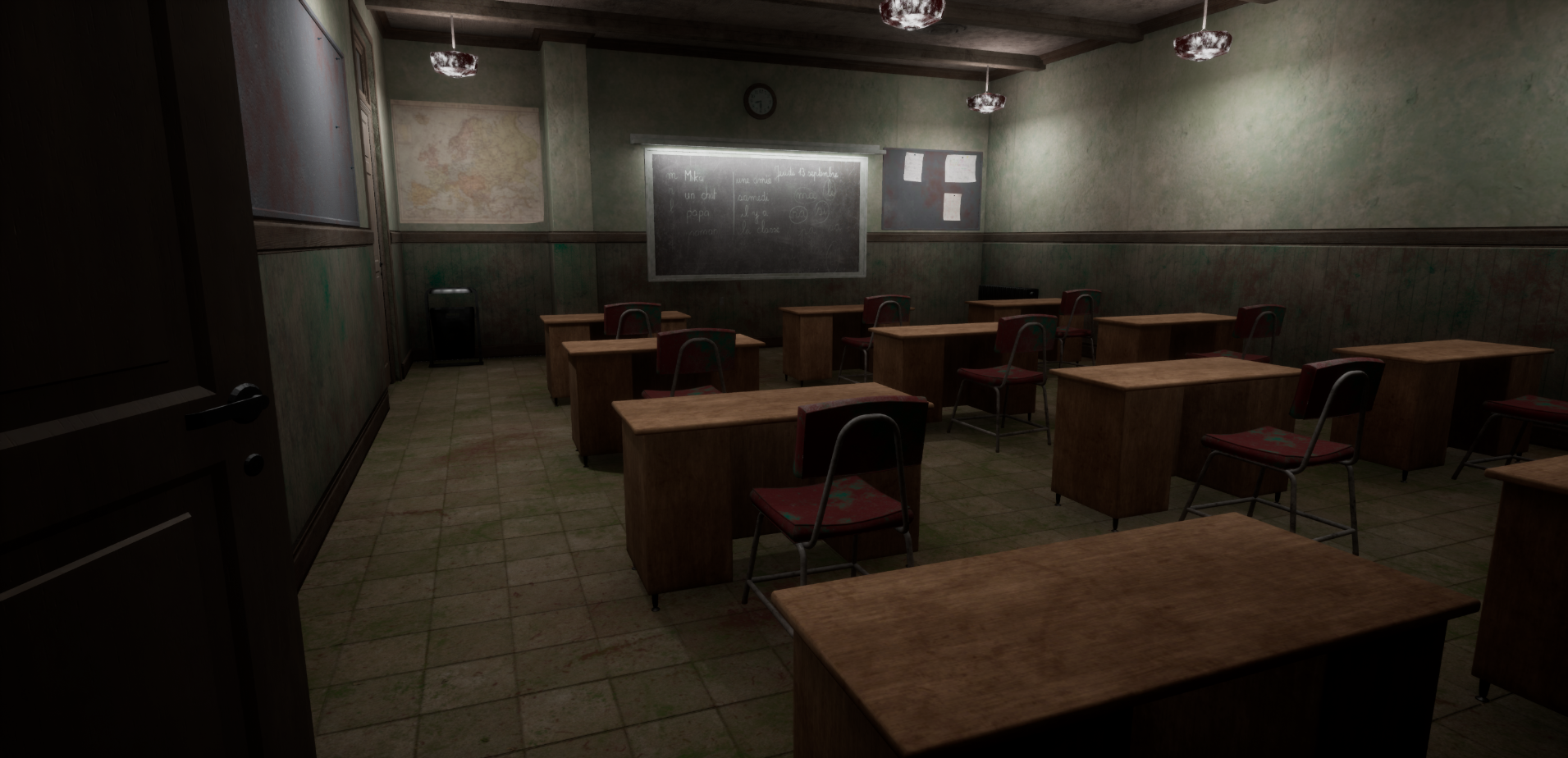 The cinematic scene was completed as a part of the level design process under the Old classroom Scene, it mainly shows the environment design of the classroom and camera movements. And the cinematic shot was achieved with the help of the Unreal engine sequencer.