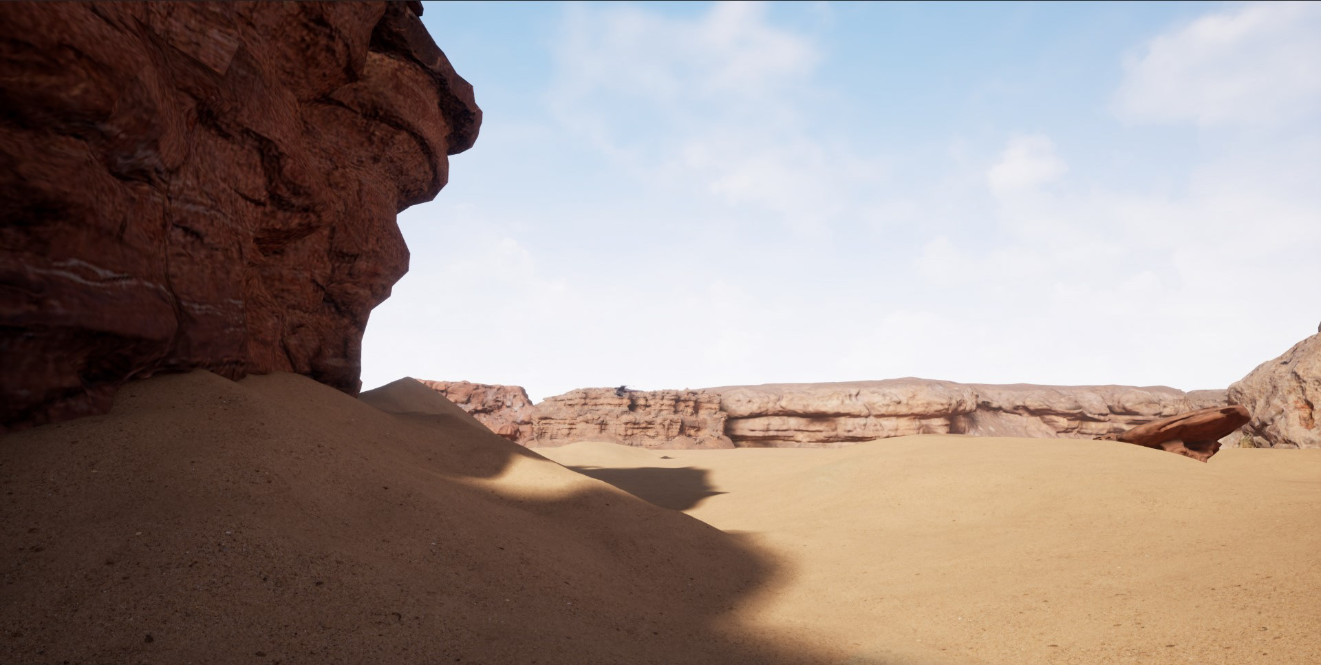 The cinematic scene was completed as a part of the level design process under Desert Scene, it mainly shows the movements and animated shots of the starfighter flying through the desert. And the cinematic shot was achieved with the help of the Unreal engine sequencer.